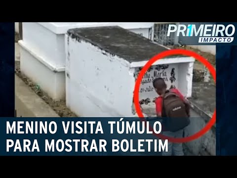 Menino visita túmulo para mostrar boletim escolar | Primeiro Impacto (13...